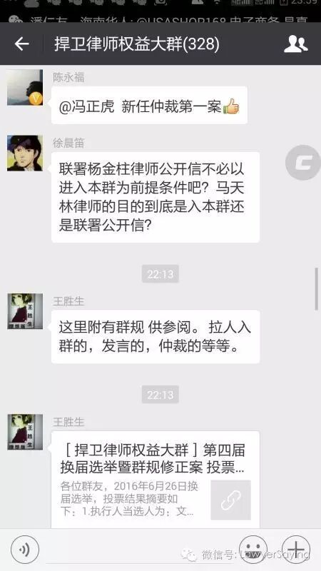 冯正虎申请仲裁薛荣民李长青关于马天林律师入群案纪实